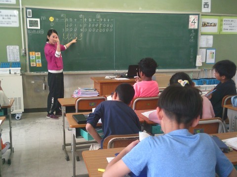 4年生の算数は,3つの教室に分かれて取り組んでいます。今日は,大きい数の表し方の学習をしていました。