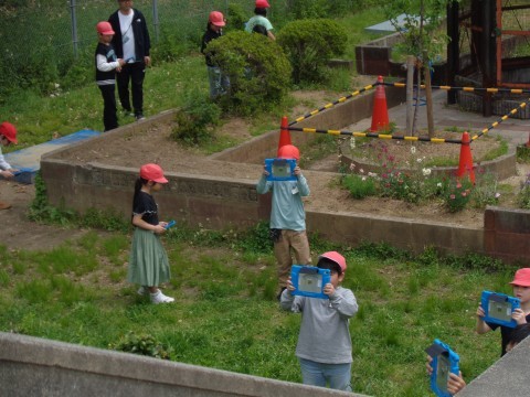 「あ,モンシロチョウがいる!」や「テントウムシもいるけど,これって春の生き物?」と言いながら,見つけた生き物をiPadで写真に収めていました。