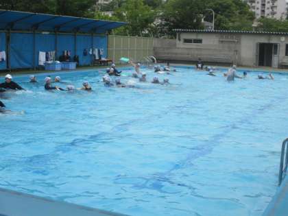 今日の水泳の時間に、ビート板を使って、バタ足の練習をしました。