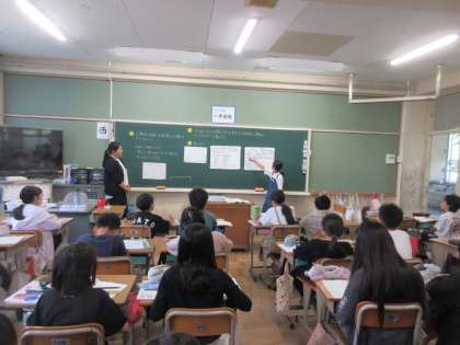 2年次研修の一環として、算数の三角形の作図についての授業を行いました。教育センターから専門指導員の先生にもご来校いただき、授業後に指導も受けました。
