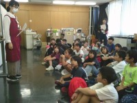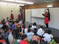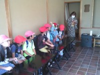 堺市博物館の見学の1組の様子です。展示コーナーでは、クイズに取り組みました。説明...
