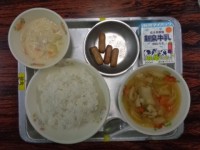 ごはん牛乳コンソメスープかけたらクリームドリア焼ウィンナーはくさいは冬が旬の野菜...