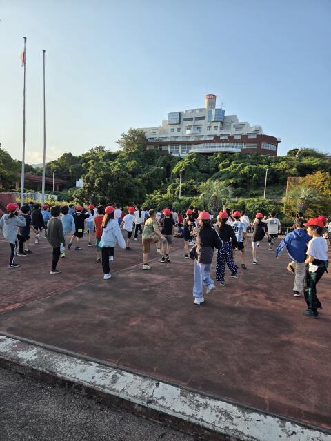 体を起こすために、みんなで新堺っ子体操をしています。