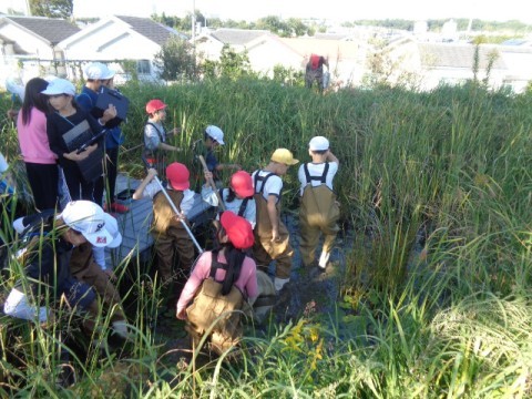上神谷小学校のカワバタモロコや上神谷の環境を守るため,校内のビオトープ調査をしました。