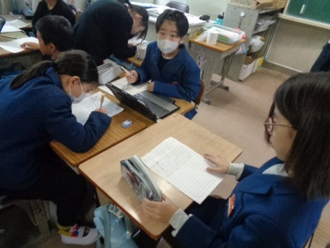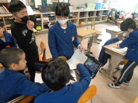 先日行った校区探検で見つけたこと,気づいたことをグループで交流しました。