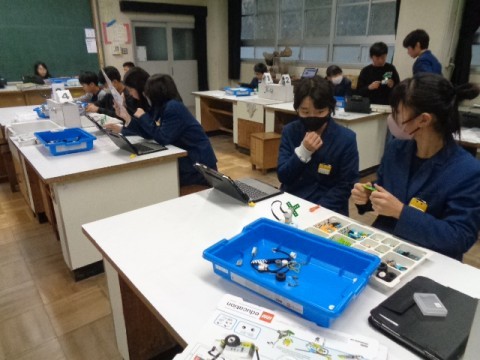 デンマークのブロックを使って電気回路のプログラミング学習をしました。