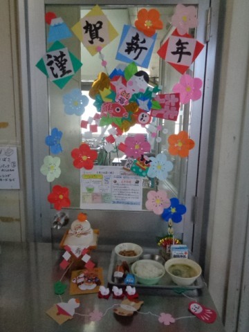 給食場のみなさんが、華やかな正月飾りをしてくださいました。