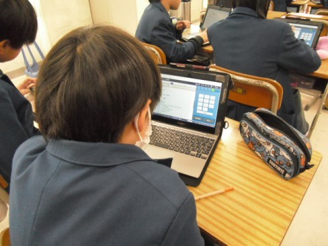 算数のまとめを行っています。タブレットを使い,いろいろな復習問題に挑戦しながら学習を進めています。