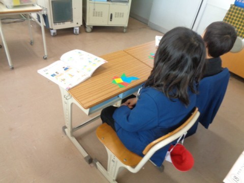 三角形を敷き詰めて、いろいろな形をつくりました。