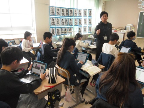 今日は,Iパッドを使い自分が作者になって物語を作っています。