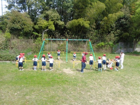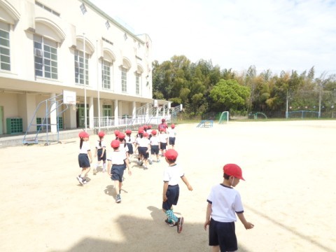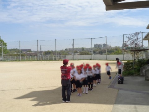 運動場での初めての体育です。
