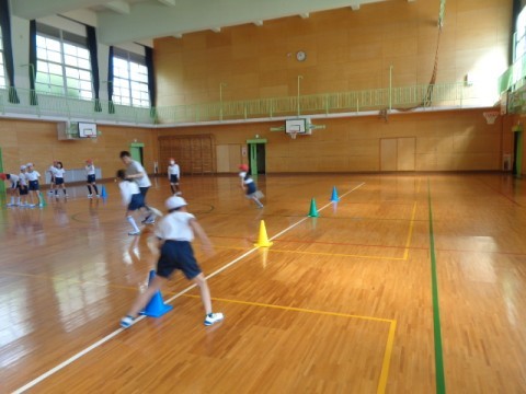 体育館で体つくり運動をしました。