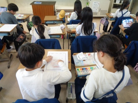 みんなそれぞれの個性が表れていて素晴らしい似顔絵が完成しそうです。