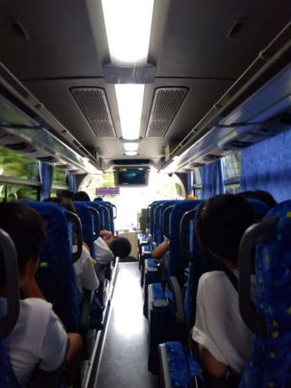 6年 修学旅行 バスの中で学習!