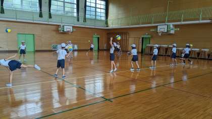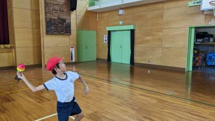 ボールを投げる運動を練習していました。遠く、早く、正確に投げるために、どうしたらいいか考えながら練習していました。