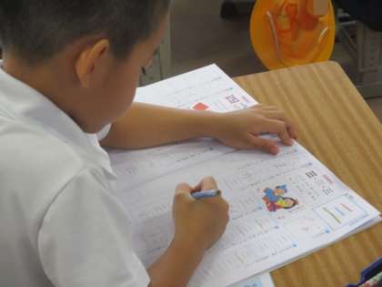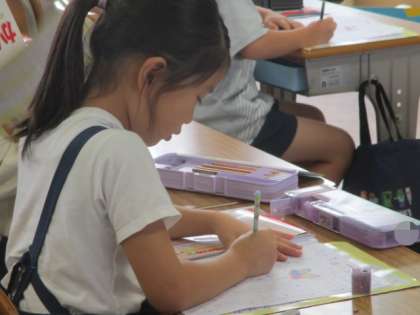 漢字の練習に取り組んでいます。今日は「三」の練習をしました。漢字練習帳に丁寧に漢字を書いていました。姿勢もとってもいいです!!