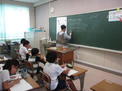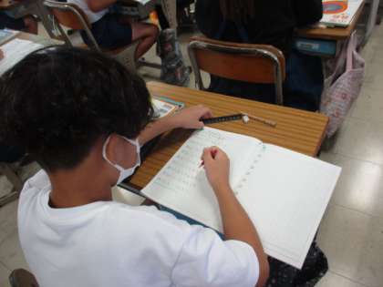 あまりのあるわり算の学習です。同じあまりのある問題でも、答え方が違うことがある、ということを学んでいました。なかなか難しいところですが、子どもたちはがんばって考えていました。