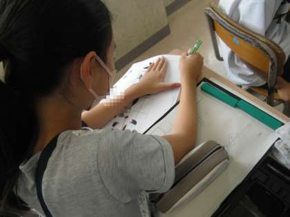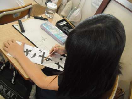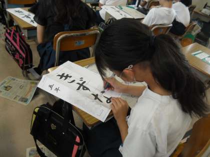 5年生 習字の時間の様子 公開日 2023/09/21 更新日 2023/09/21 活動の様子 「きずな」のひらがな3文字に挑戦していました。バランスをとるのが難しいので、自分で気をつけようと思ったところにしるしをつけていました!真剣にお手本に書き込んでいました!