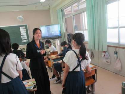 6年生 外国語 マーリン先生と朝のあいさつ 公開日 2023/09/25 更新日 2023/09/25 活動の様子 今日の気分をネイティブスピーカーのマーリン先生に伝えています。「How are you ?」のマーリン先生に聞かれると、「good!」「sleepy!」「so-so」など自分の気分をしっかりと伝えることができています!!