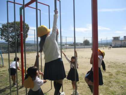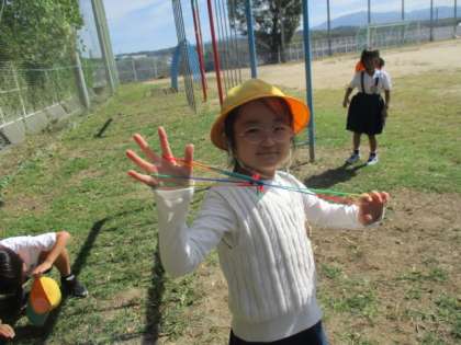 ブランコやのぼり棒をしてなかよく遊んでいました。あやとりも上手です!