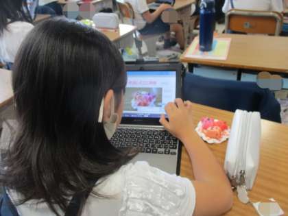 ねんどでつくったキャラクターや食べ物などの写真を投稿して、友だちに鑑賞してもらいました。友だちの作品のいいところをメッセージに書き込んだり、友だちからコメントをもらって嬉しそうに読んだりしていました!!
