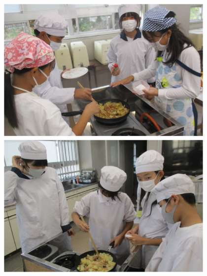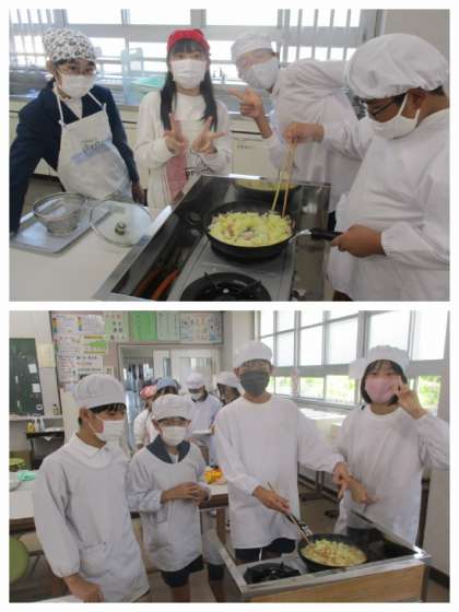 グループで楽しく「ジャーマンポテト」をつくりました!みんな楽しそうです!とってもおいしかったようで、どのグループも完食していました!!