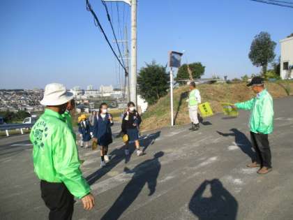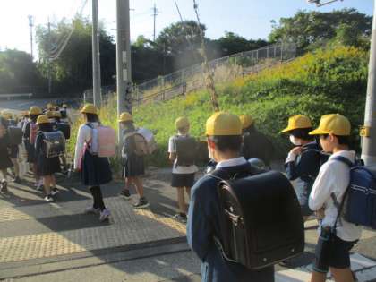 6年生が先頭と最後尾をしっかりと守ってくれています。みんな安心して登校することができています!!