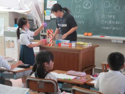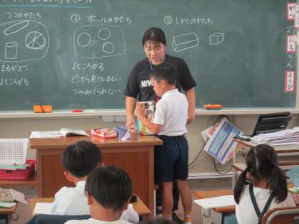 なかまわけした「かたち」の特徴についてみんなで話し合っていました。気づいたことをみんなの前で上手に発表することができていました!!