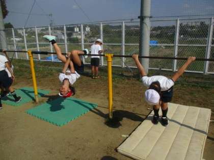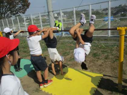 「逆上がり」の練習をしていました。友だちの練習を手伝ってあげている人もいました!一生懸命に練習に取り組むことができていました!!