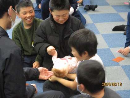助産師さんに来ていただいて、「いのちの授業」をしていただきました。命のはじまりや、性やプライベートゾーンなどについてお話していただきました。赤ちゃん人形を実際に持って、重さや重心がどこにあるのかなどを体験しました!!