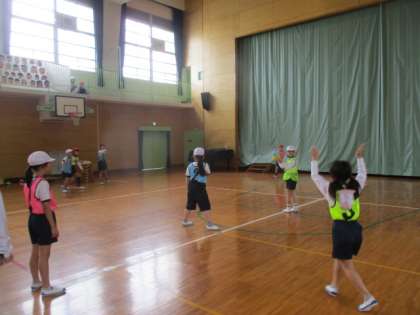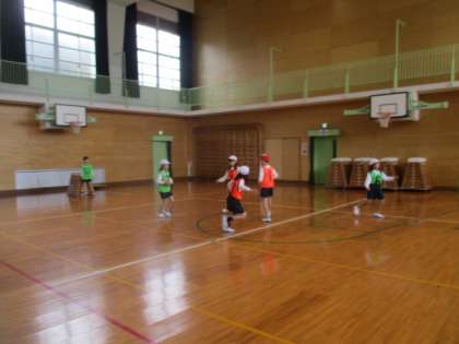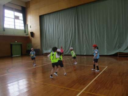 「パスをつないでゴールを決めるためにはどうすればいいのか」グループで作戦をたてて取り組んでいました。審判の係も撮影の係の人も一生懸命頑張ていました!