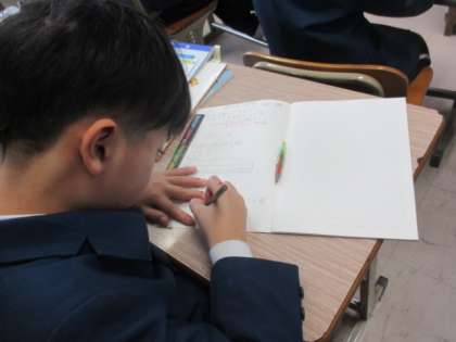 問題を読んで、わからない数を□を使って考えていました。テープ図や言葉の式で表して、□を使った式で表して、あてはまる数字を求めていました。ノートにしっかりと自分の考えをまとめることができていました!