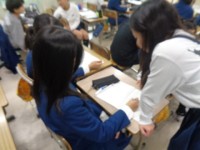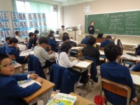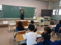 九九の表をよく見ながら、担任の先生から出題された問題にチャレンジしていました。九九の表を見ていると、いろいろなヒミツがあるようでした!