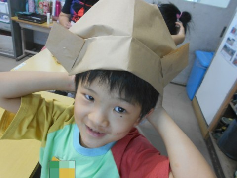 芸術鑑賞にむけて「キノコ帽子」をつくりました。担任の先生の話をよく聞いて、かわいらしい「キノコ帽子」を完成させていました!仕上げは、折り紙で飾りを作って、きれいにはりつけていました!!