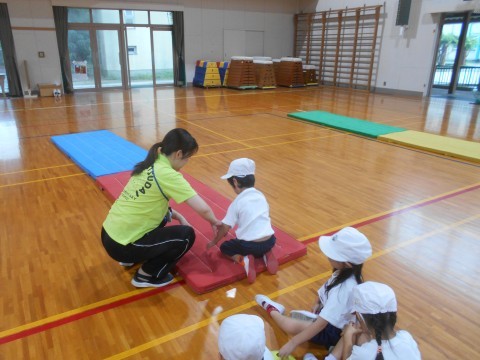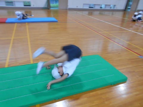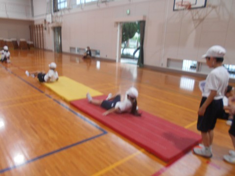 1年生 体育 前転にチャレンジ!! 公開日 2025/09/29 更新日 2025/09/29 ●1年 マット運動に取り組んでいます。今日は、みんなで「前転」にチャレンジしていました!担任の先生から教わったポイントを確認しながら、きれいな「前転」ができるように何度も練習することができていました!! 1年生