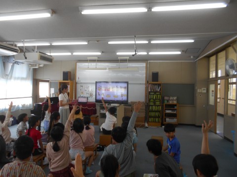 オーケストラの鑑賞の前に、いろいろな楽器の名前を確認していました!今までに学習したことや、生活の経験から知っている楽器名前を発表していました!!