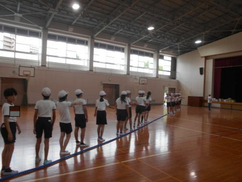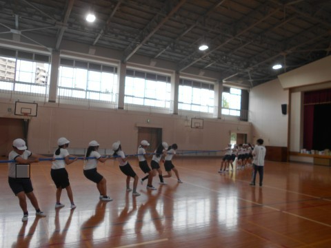 6年生 連合運動会の練習 「つなひき」 公開日 2025/10/02 更新日 2025/10/02 ●6年 本格的な「つなひき」の練習がはじまりました!綱をひく姿勢を確認して、グループで力をあわせて低い姿勢になるように実践しました!最後に、A・Bのグループで対決しました!! +1 6年生