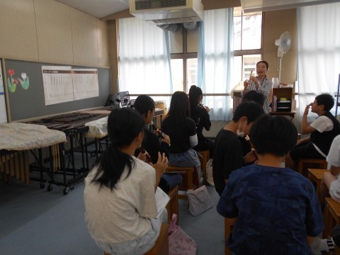 リコーダーの学習です。音の重なりや響きを意識して演奏します。