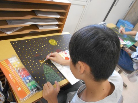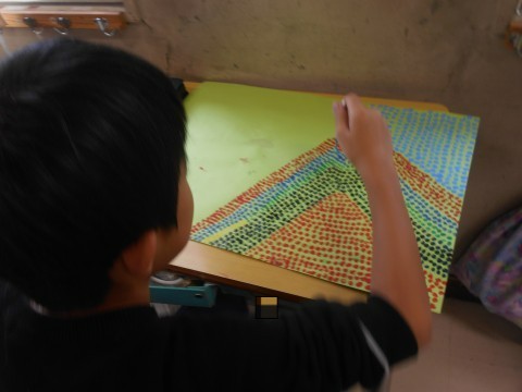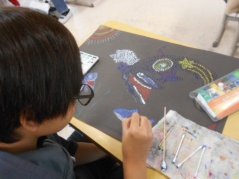 アボリジナルアートが完成間近です!綿棒やつまようじなどを駆使して,細かいところまで丁寧に仕上げることができていました!!