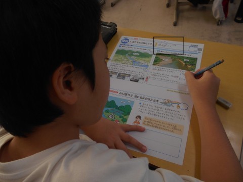 「流れる水のはたらき」の単元末テストに取り組んでいました!地面を流れる水の様子や川の流れのはたらきなどについて学習したことを思い出して,じっくりと考えて解答していました!!