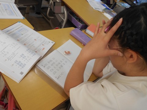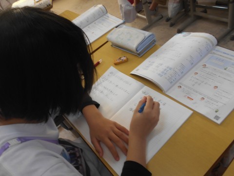 分数のたし算・ひき算の学習も大詰めです!通分・約分も完璧になってきました!!毎日続けているので,スムーズに計算できるようになっています!!