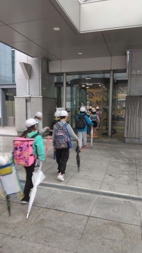 雨のため、少し遅れましたが堺市役所に到着しました。これから21階ロビーに向かいます。