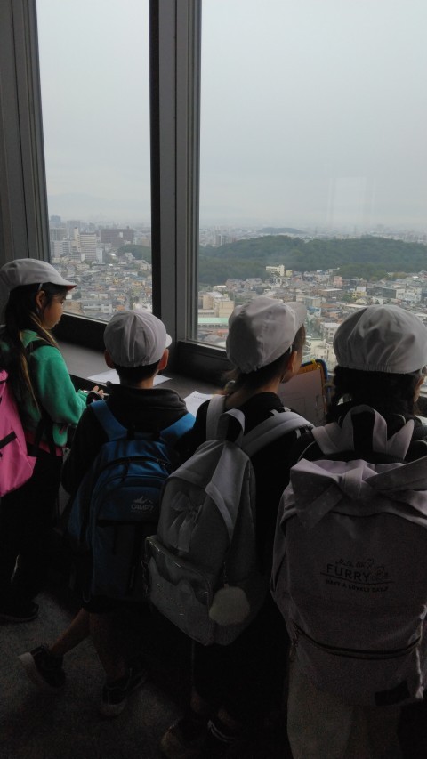 21階ロビーから堺の町を見下ろしていろいろなものを探します。