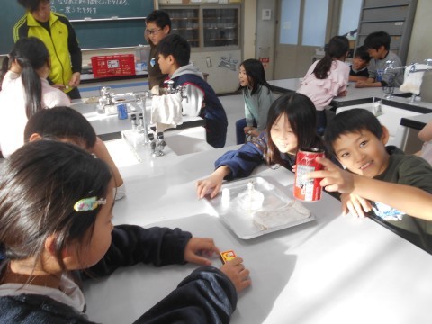 アルコールランプの使い方を学習して,実際にマッチで火をつけ,消化までを体験しました!マッチをすって火をつけるのが難しかったようです!