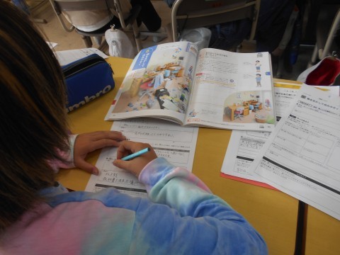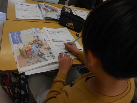教科書の資料を見て,快適に過ごすためにどんなことに取り組めばいいのか話し合っていました!整理整頓すると気持ちよく過ごせることに気づいていました!!