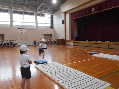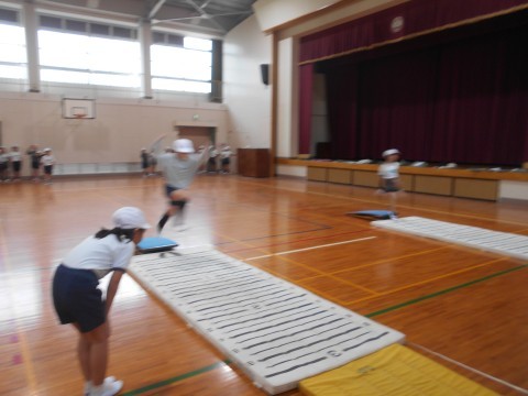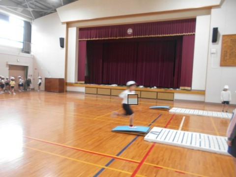 体育館で,走り幅跳びの練習に取り組んでいました!!今日は踏切と着地を意識してできるように練習していました!友だちの記録をチェックして,伝えることもできていました!!