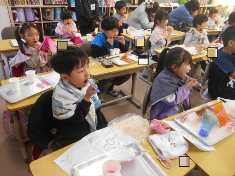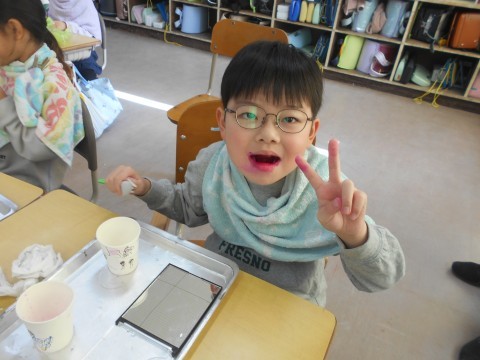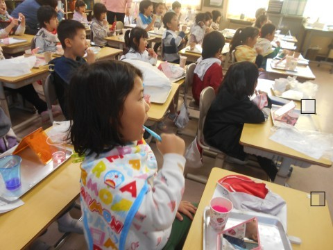 奥歯を重点的に磨けるように,保健室の先生に歯磨きの仕方を教えてもらいました!!きれいに磨けるように,真剣にはみがきに取り組んでいました!!
