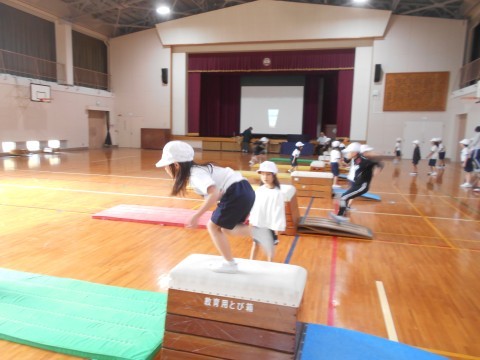 自分で挑戦したい跳び箱を選んで,意欲的に取り組んでいました!!友だちと相談しながらチャレンジする跳び箱を選んでいる人もいました!!とっても上手になってきています!!