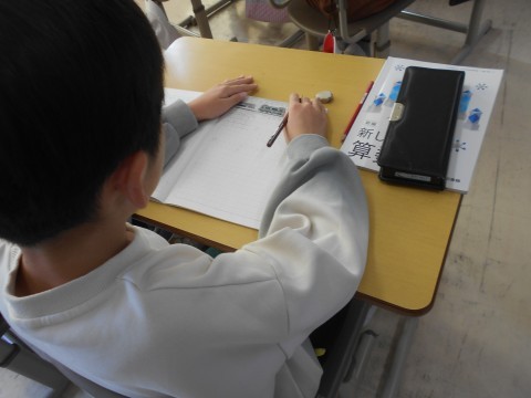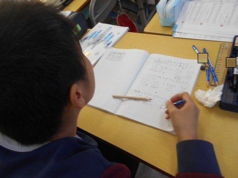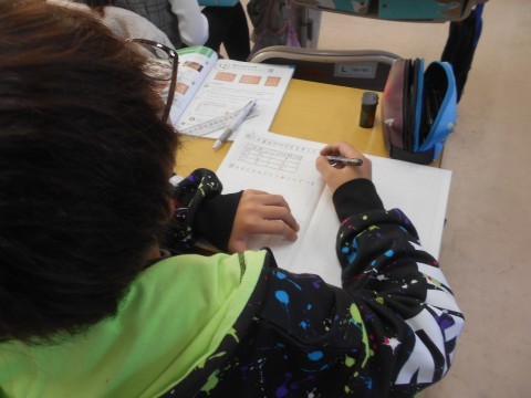 割合の学習に取り組んでいます。今日は,混み具合を比べる学習でした。教科書の問題を見て,数値の意味を考えていました!!