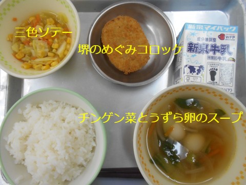 堺では小松菜の栽培が盛んです。「堺のめぐみコロッケ」には、堺産の小松菜が入っています。